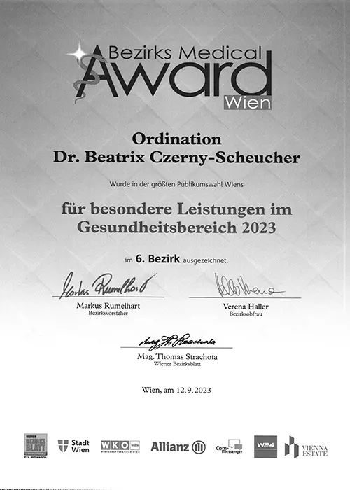 Herzlich willkommen in der Facharztpraxis Med. R. Dr. Beatrix Czerny-Scheucher! Wir freuen uns, Ihnen hier unser vielseitiges medizinisches Leistungsangebot vorstellen zu dürfen!